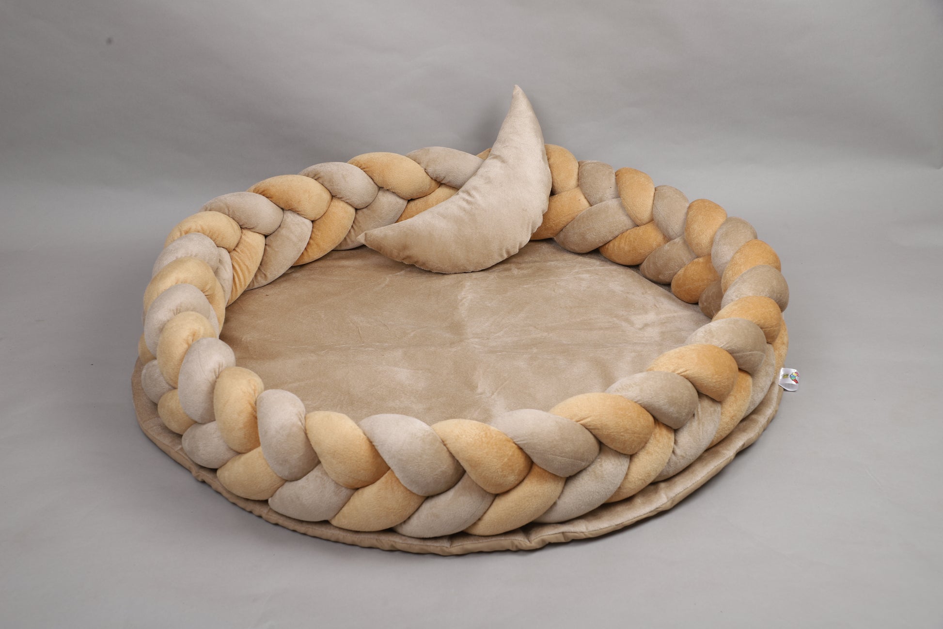 The thick padded base offers extra cushioning during tummy time, naps, or everyday play. With its soothing neutral tones and braided texture, it perfectly complements any nursery décor while keeping your baby comfortable and engaged.